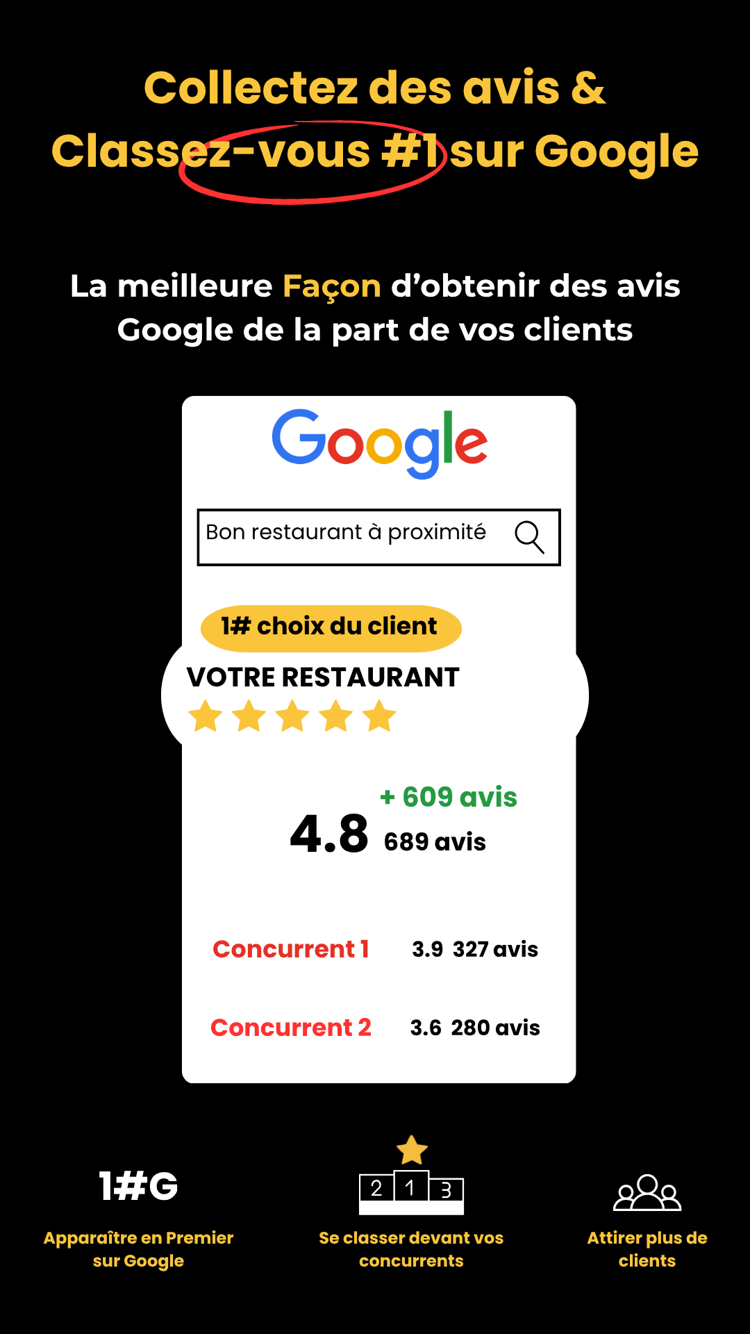 Pour rappel, la création d'une fiche établissement Google est nécessaire pour recevoir des avis sur Google. Si vous n'en avez pas encore, veuillez en informer notre équipe afin que nous puissions vous aider à en créer une.